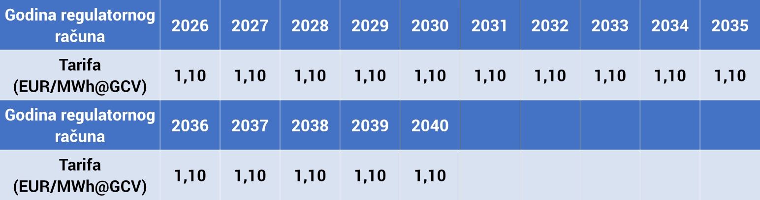 Tarifne stavke utvrđuju se sukladno Metodologiji utvrđivanja iznosa tarifnih stavki za prihvat i otpremu UPP-a, a konačne iznose za svako regulacijsko razdoblje određuje Hrvatska energetska regulatorna agencija (HERA) svojom odlukom.